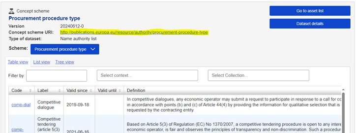 Our catalogue provides a carefully maintained vocabulary, available as an independent dataset, covering the different types of procurement procedures.